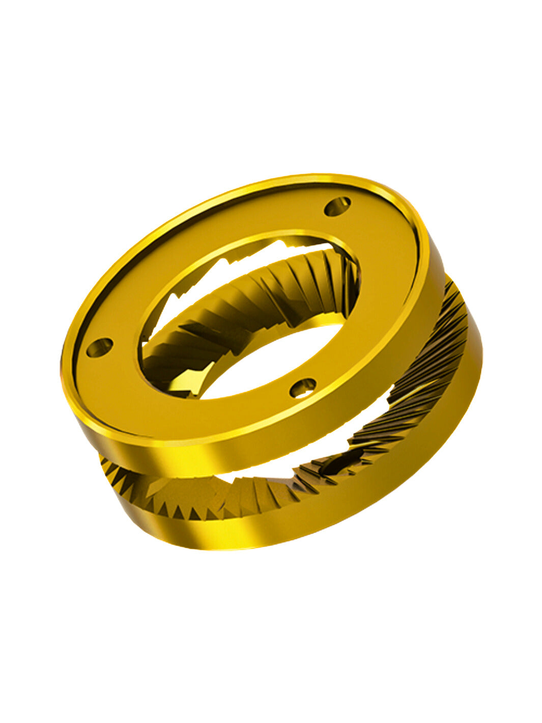 - ⌀83mm (⌀3.3in) Stainless Steel Flat Burr Set with Titanium Nitride (TiN) coating