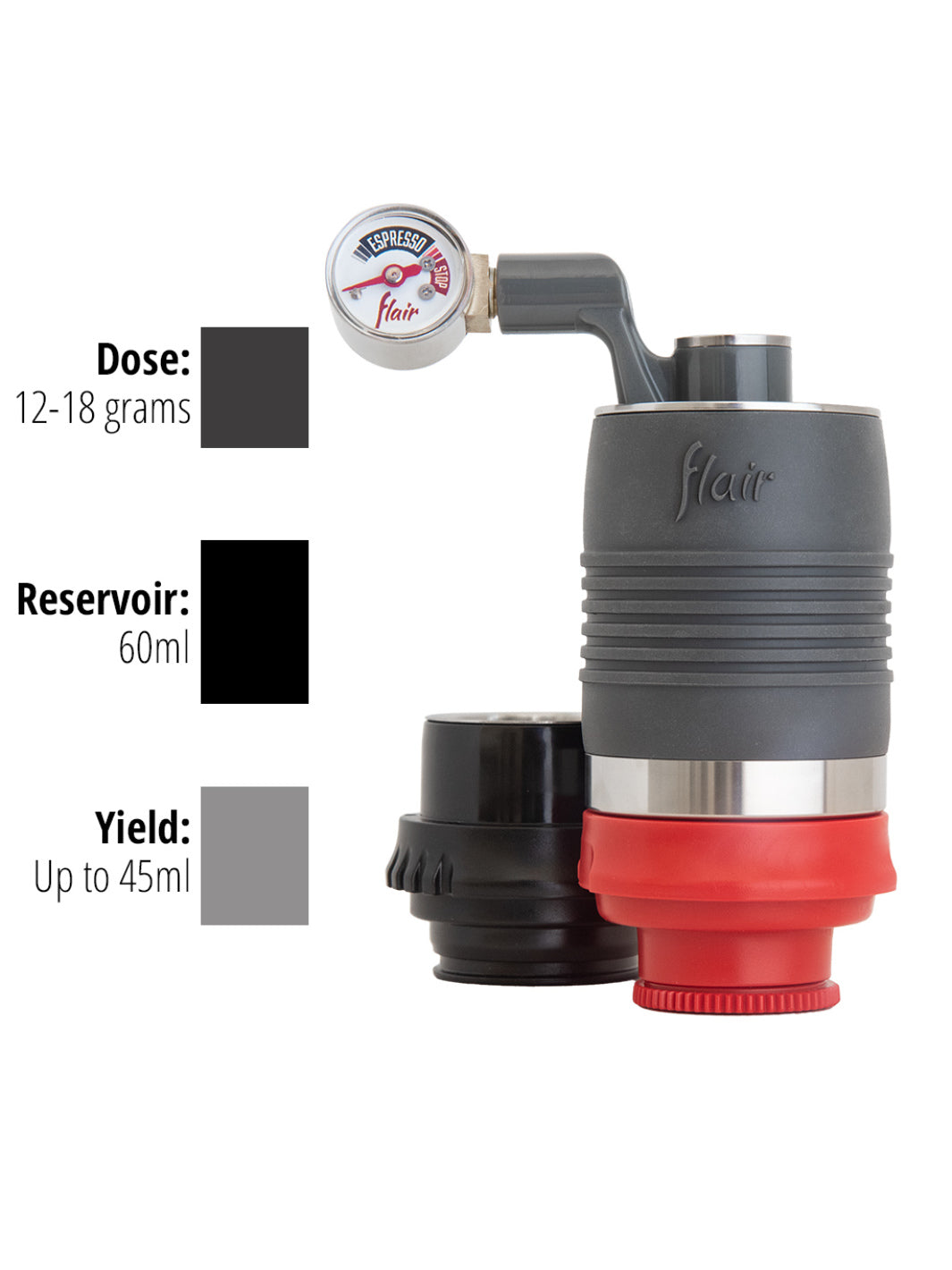 The Flair NEO Flex is the beginner home-barista's dream. Featuring two portafilters, a custom pressure gauge, a no-preheat brew cylinder and a high-strength, ultra-light poly frame.